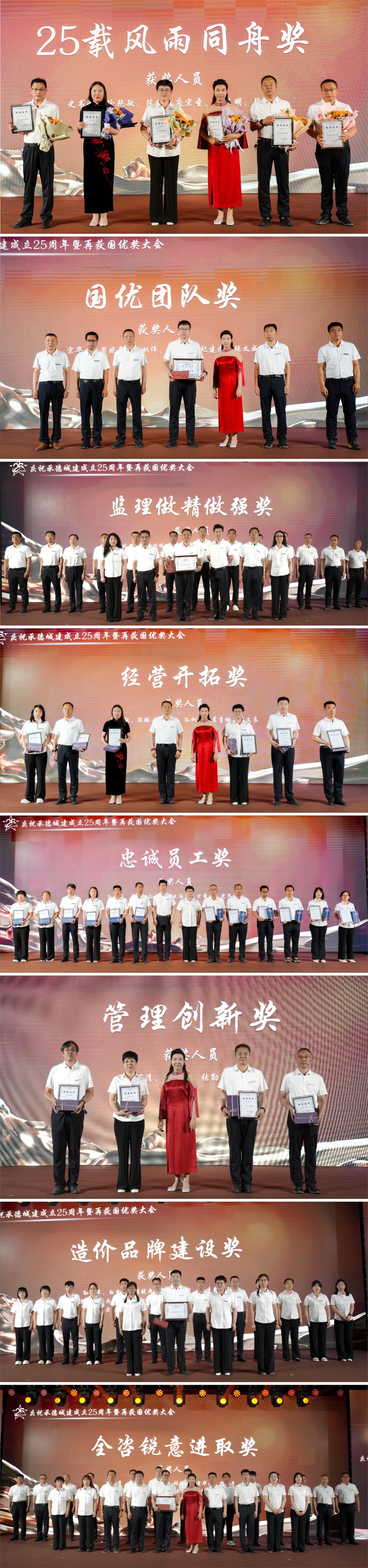 通過25年如一日堅持人才戰(zhàn)略,承德城建前行路上,涌現(xiàn)出了一批又一批優(yōu)秀的先進(jìn)團(tuán)隊和個人,他們在會上被授予“國優(yōu)團(tuán)隊獎”、“全咨銳意進(jìn)取獎”、“監(jiān)理做精做強獎”、“造價品牌建設(shè)獎”、“經(jīng)營開拓獎”、“管理創(chuàng)新獎”、“忠誠員工獎”、“25年風(fēng)雨同舟獎”等獎勵,以表彰他們在公司向高端全咨企業(yè)邁進(jìn)的過程中做出的突出貢獻(xiàn),激勵全體員工學(xué)先進(jìn)做先進(jìn),努力發(fā)揮自身潛力,為企業(yè)做出更大的貢獻(xiàn)。