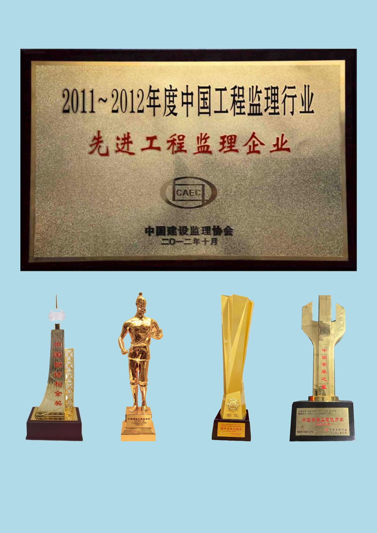 承擔(dān)工程監(jiān)理和全過程工程咨詢服務(wù)的多個項(xiàng)目先后榮獲6項(xiàng)國家級獎項(xiàng)(魯班獎兩項(xiàng)、國優(yōu)工程獎兩項(xiàng)、中國鋼結(jié)構(gòu)金獎、中國安裝之星獎),及數(shù)十項(xiàng)省級優(yōu)質(zhì)工程獎。